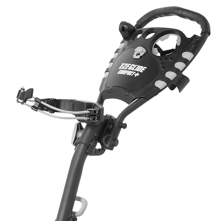 Eze Glide Compact+ 3 Wheel Golf Trolley. Introducing The Eze Glide Compact+ Trolley, the ultimate 3 wheel golf push trolley folding down to a very compact size. Feature packed with an adjustable handle height, multi-functional console with weatherproof storage space, drinks holder & a tee and ball holder. The compact size is ideal for storage.
